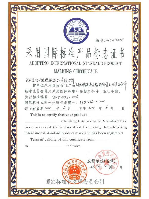 • 鋼編管國(guó)際標(biāo)準(zhǔn)產(chǎn)品標(biāo)志證書